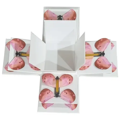 DIY Box with 4 Pink or Blue Butterflies and Teddy